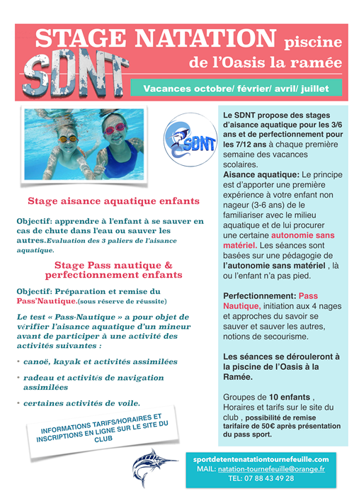 Le Sport Détente Natation Tournefeuille (SDNT) a pour objectif principal de faire de la prévention de noyade, et du perfectionnement de natation pour les enfants et adultes de tout niveau.